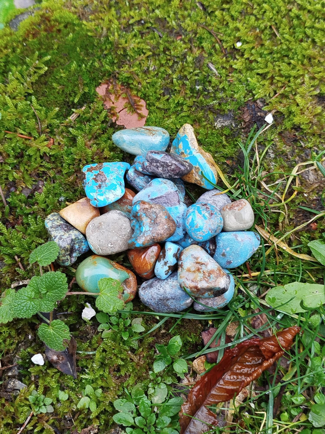 Histoire de la Turquoise : Je tiens mon nom de la Turquie, lieu de transit où on me vendait beaucoup. Je suis une pierre sacrée ( Égypte, Tibet, Mayas, Aztèque...) Je suis la pierre des voyageurs. Corps physique : Je soutiens les reins , je renforce le système immunitaire. Je suis efficace pour soutenir les effets des traitements que vous prenez . Je vous recharge en énergie. Je stimule votre activité cérébrale. Émotions/Spiritualité : Je renforce en vous les sentiments de sérénité et de paix . Je vous mène vers la joie ,la compassion, le pardon... Je suis une pierre qui développe les goûts artistiques. Je suis la pierre idéale pour accompagner les personnes en fin de vie . Je vous aide à la communication avec les animaux.